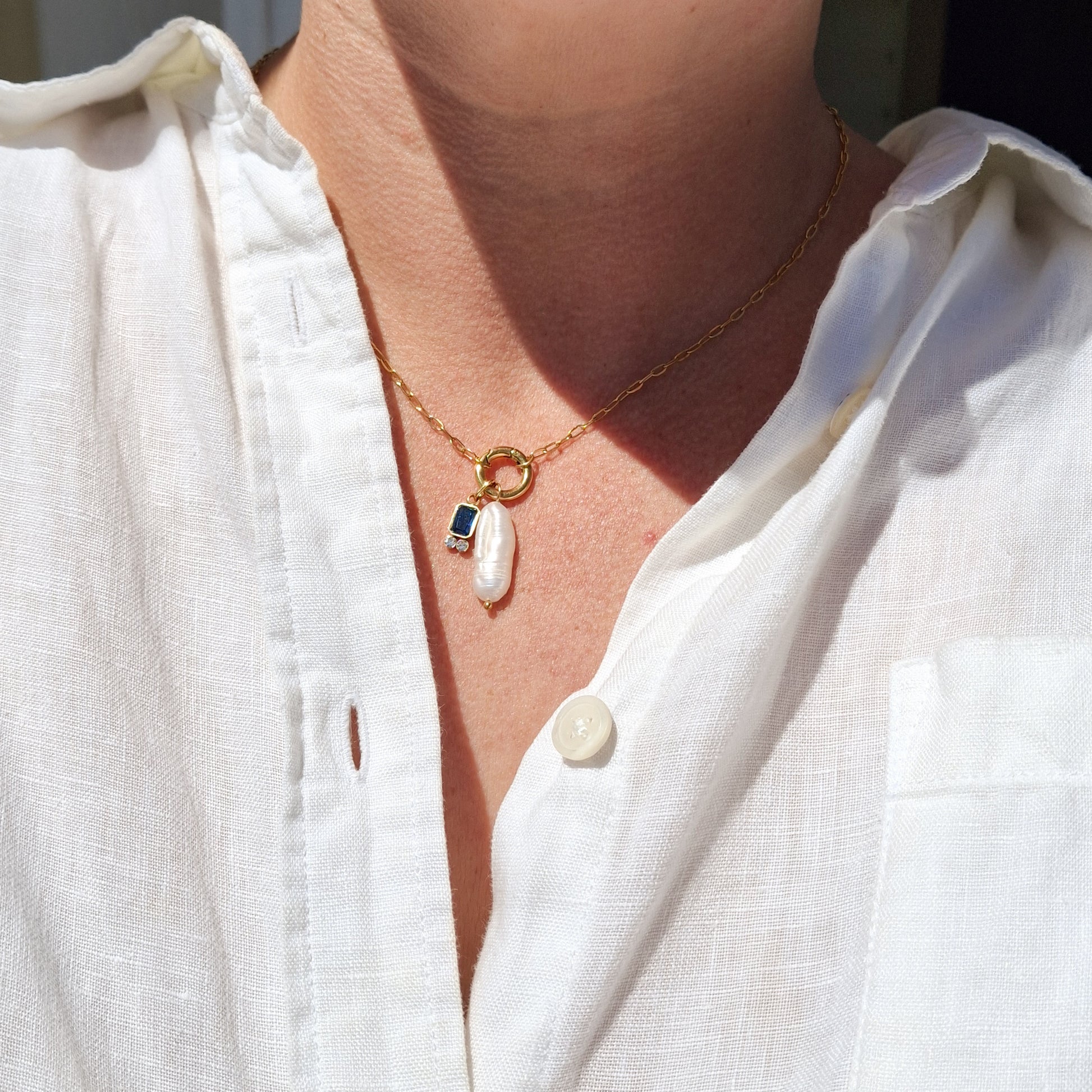 Add a touch of luxury and style to your jewellery collection with this gold plated, tarnish resistant chain. Accented with a stunning freshwater pearl and sparking zirconia, it's an essential piece for any occasion. Upgrade your accessory game today!