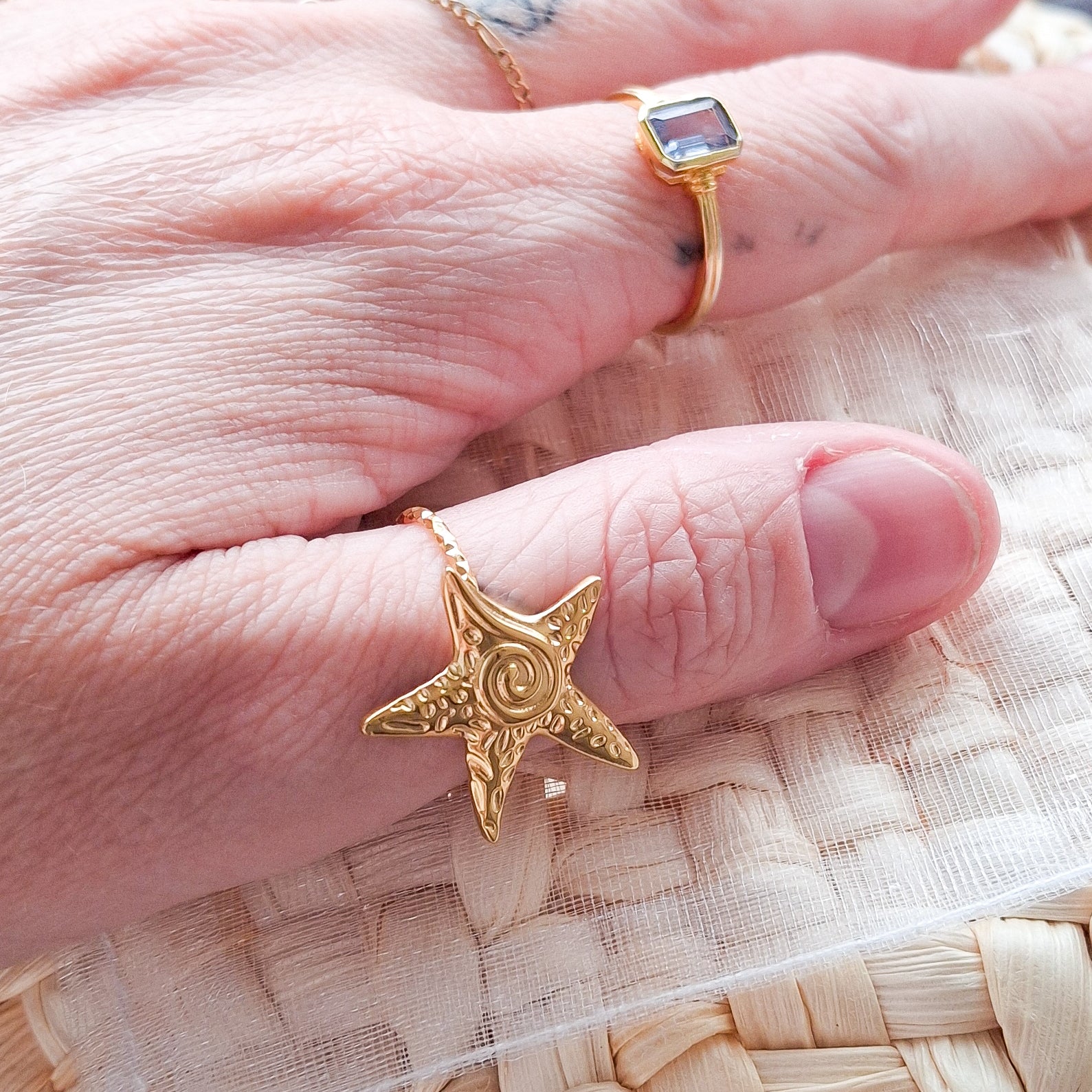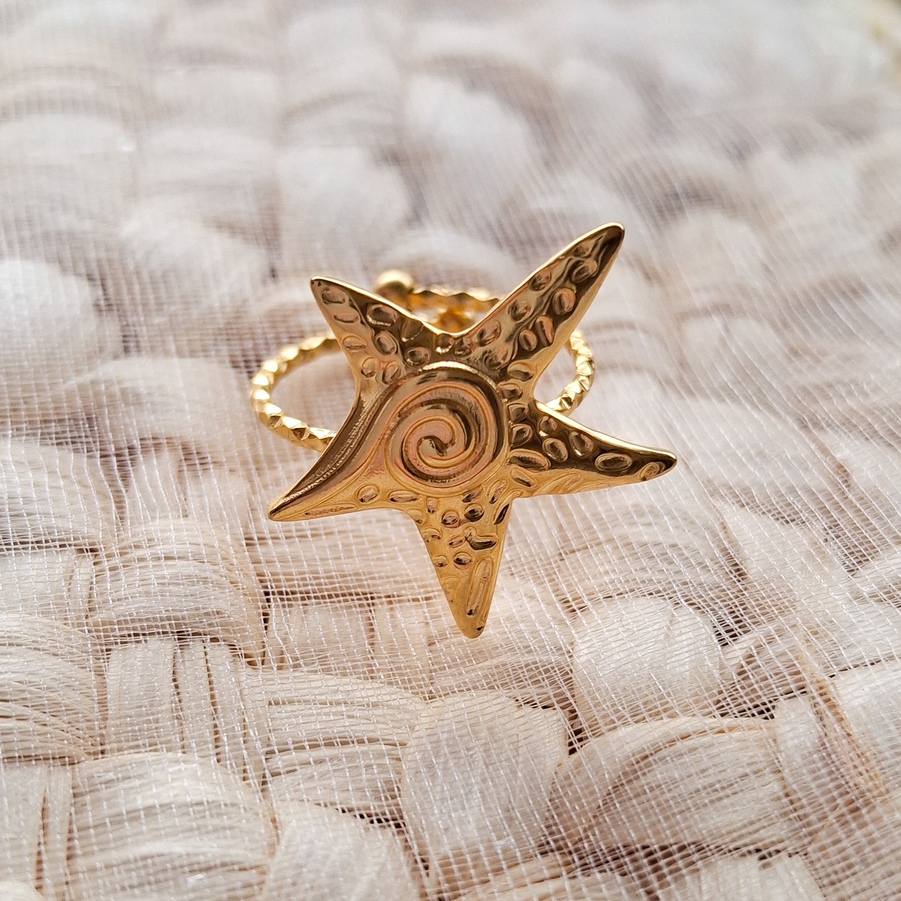 Rock your summer look with the Leana Ring! Made from gold plated stainless steel, this adjustable ring is the perfect addition to your jewelry collection. Please note that while it's not tarnish resistant, it's sure to add some shine to your style!