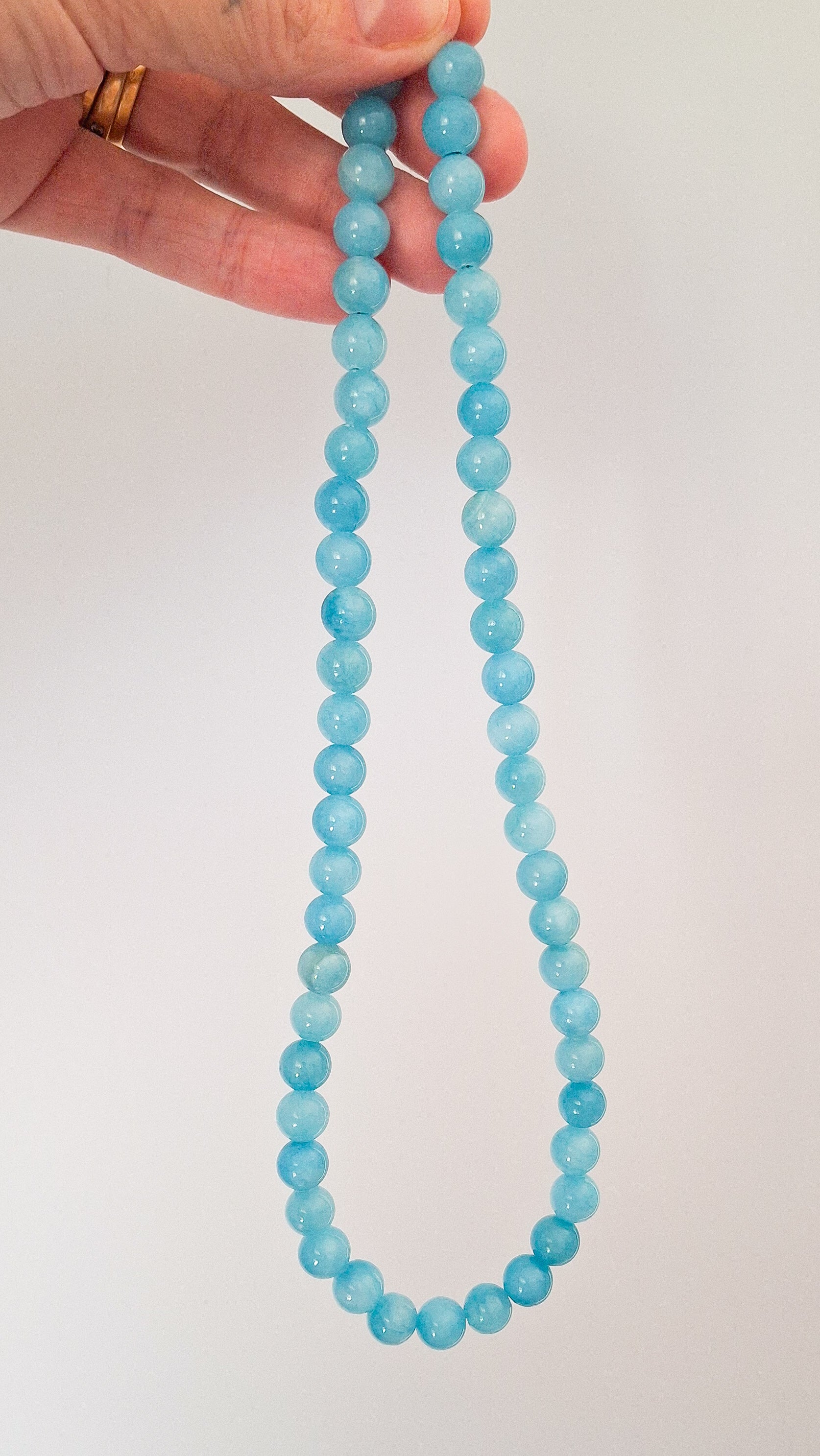 This stunning beaded necklace features dyed jade beads, gold plated hardware and the signature Ruess magnetic clasp.
