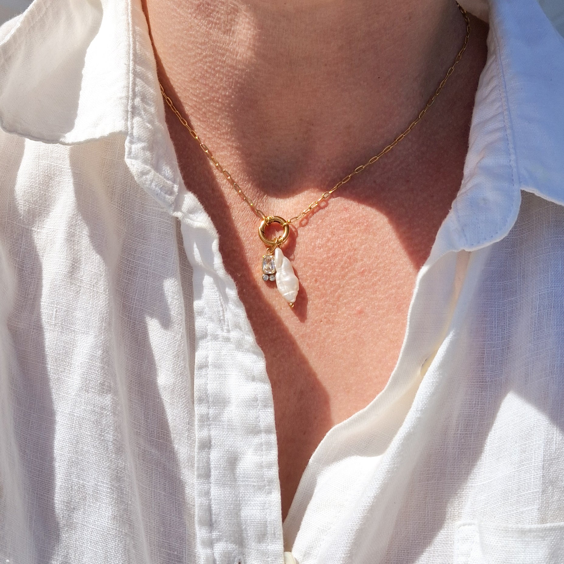 Add a touch of luxury and style to your jewellery collection with this gold plated, tarnish resistant chain. Accented with a stunning freshwater pearl and sparkling zirconia, it's an essential piece for any occasion. Upgrade your accessory game today!