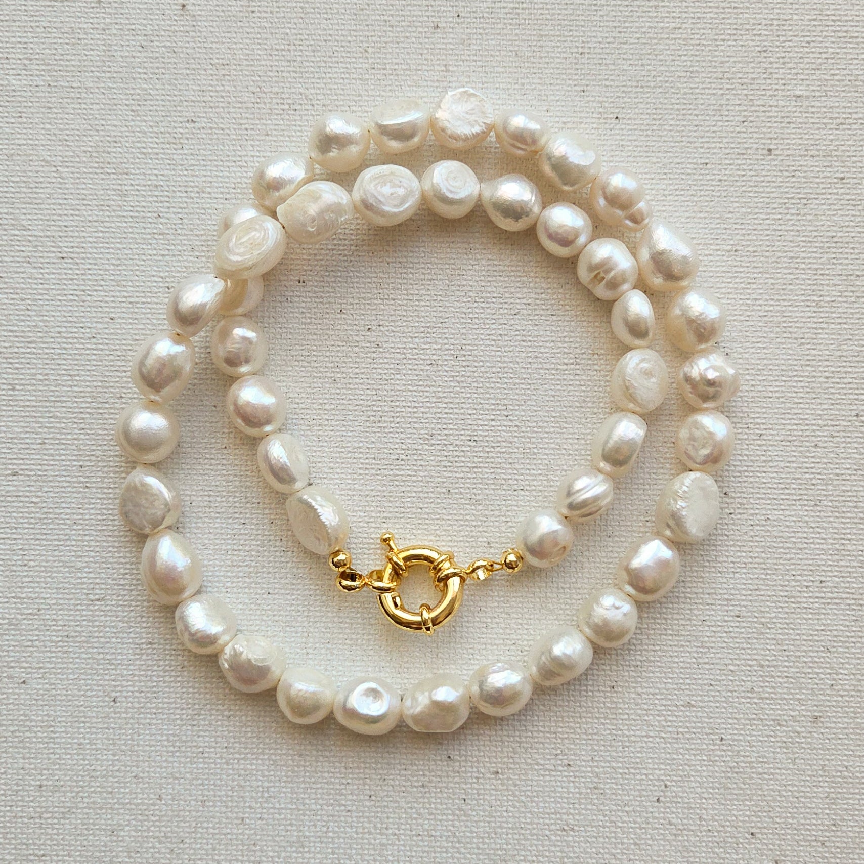 A chunky and funky strand of baroque freshwater pearls. Coastal cool girl energy, timeless style and the ability to add on your favourite charms. Pearls are so back! These aren't your grandma's Pearls.